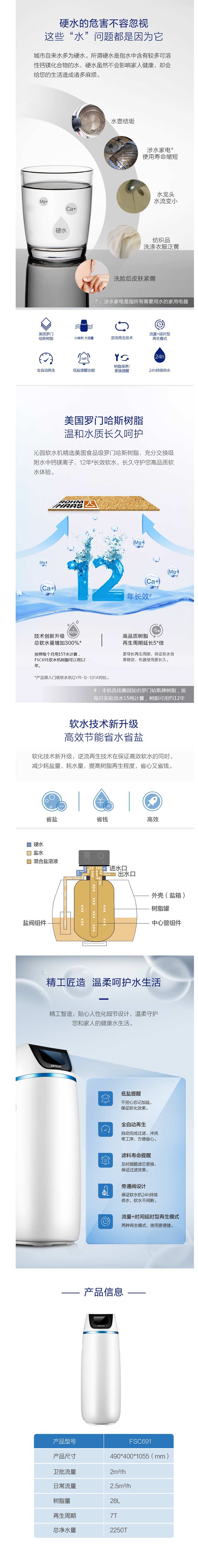 软水机主要是通过离子交换树脂去除水中的钙、镁离子,降低水质硬度。另一种技术是区别于化学离子交换法的物理软水方法,是通过高能聚合球将水中的钙镁离子打包成结晶体存在于水中,使其在水中不结垢。主要技术有纳米晶技术。软水与自来水相比,有极明显的口感和手感。 使用软水,水杯、茶壶、浴缸、水斗不再滋生水垢,更容易清洗。家中的自来水管不再结水垢,热水器的使用寿命更加长,不会因为使用时间长,而热水的流量越来越小。使用软水可使洗涤剂及肥皂等洗涤用品的使用量减少,可使水管维修费用减少,可使衣服的寿命增加,而且洗涤后衣服不易泛黄,。 软水与自来水相比较,有极明显的口感和手感,软水含氧量高,硬度低。软水沐浴、洗发、洗脸,光滑细嫩,对皮肤具有保护作用,可以使美容、美发、护肤的投资获得更好的效果。软水洗衣物洁净、蓬松、艳丽、无残留。软水洗餐具、茶具晶莹剔透,脸盆、浴缸也不再有污渍,可节省洗涤剂,且十分省力。